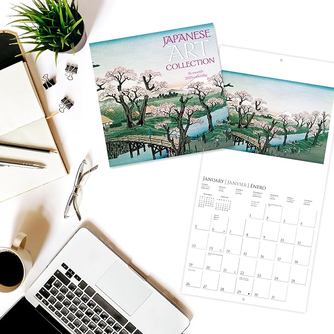 Graphique 2025 Japanese Art Collection Wall Calendar | 12” x 12” | Thick Paper | Home & Office Organizer | Large Monthly Grid | 3 Languages & Marked Holidays | 4 Month Preview Page for 2026