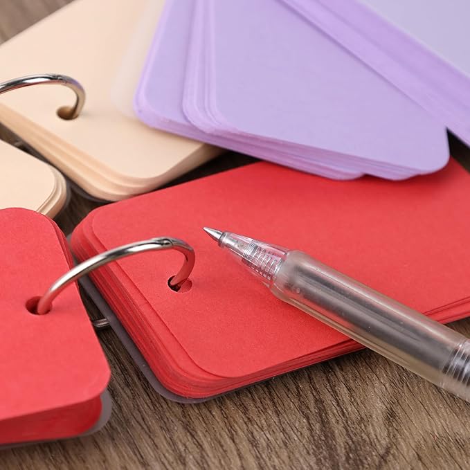 Koogel 600PCS Index Cards with Rings and Covers, 3.5 x 2.2 Inch Blank Index Cards 12 Colors Easy Flip Flash Card Study Note Card for School Learning Memory Recipe Cards