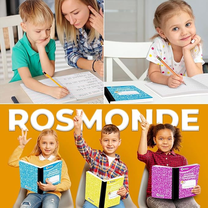 - CENTRAL SEWN BINDING: Our primary composition notebooks have sewn binding, ensuring the pages are securely held together. This feature increases durability, especially when the notebook is frequently handled by young students.