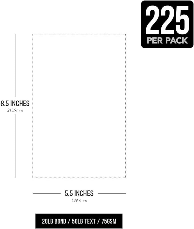 - TAKE ARTS AND CRAFTS TIME TO A NEW LEVEL – Breathe new life into arts and crafts time with this 20lb Bond / 50lb Text / 75GSM Paper. Each sheet measures 8.5 x 5.5 inches (U.S. Half-Letter Size) and excellent use for letters, restaurant menus, arts and crafts, posters, flyers, brochures, invitations, business documents, and many more!