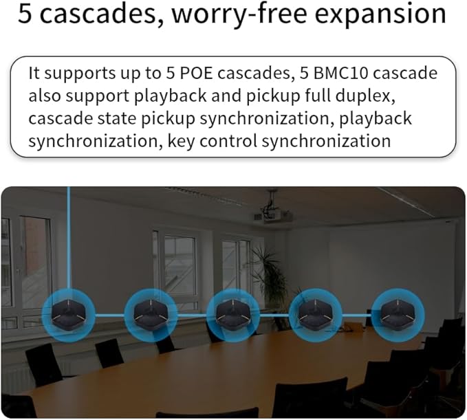 BMC10 Speakerphone • Conference Speaker with Microphone • 360°Voice Pickup • 5 POE Cascades • Advanced Noise Reduction • USB-C Plug & Play • Compatible with Zoom,MS Team,Skype