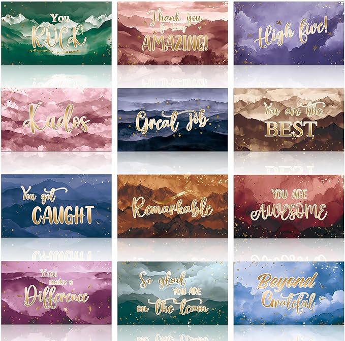 Yeaqee 240 Pcs Employee Appreciation Kudos Cards Funny Blank Back Motivational Card Encouragement Thank You Note Recognition Card for Teacher College Affirmation Gift(Scenery)