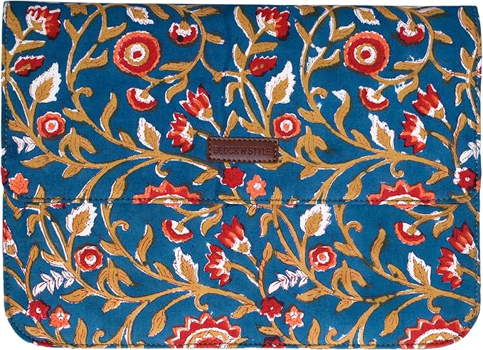 Cotton Hand Block Print Laptop Sleeve Case Bag Compatible with MacBook Air/Pro, 13-13.3 inch Water-Resistant Notebook, Travel Carrying Case Bag Protective Portable Computer Bag, Blue 2