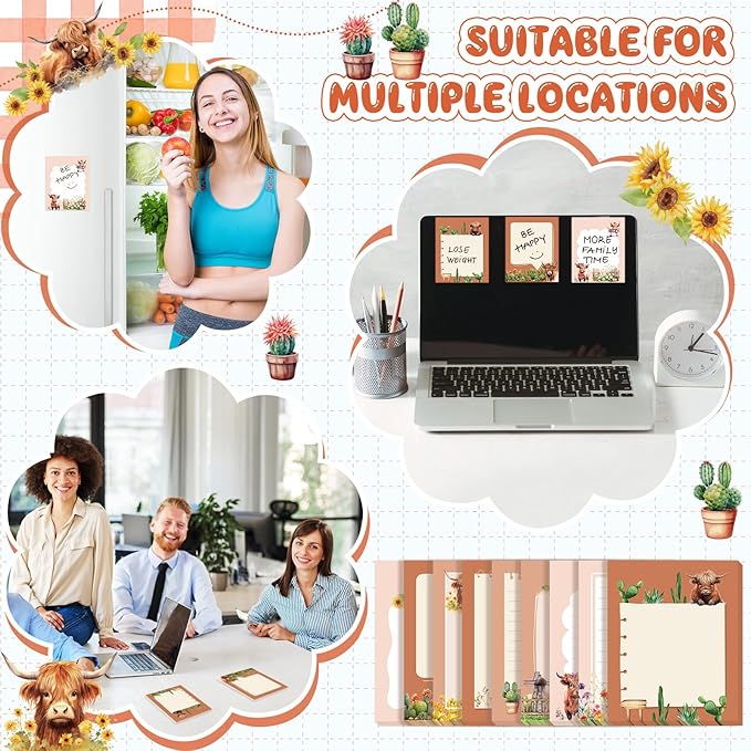 - Sticky and Removable: with good adhesiveness, these highland cow pastel sticky notes can be easily pasted on smooth and dry surfaces, such as textbooks, notebooks, refrigerators, blackboards, walls, windows, doors, bulletin boards and so on, and they can be easily removed without leaving stains