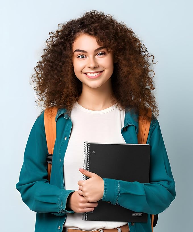 Dunwell College Ruled 1 Subject Notebook, 80 Sheets, Spiral Notebook with 8.5 x 11 Paper, Protective Plastic Cover, Divider with Pockets, Perforated Pages, 3-Hole Punched