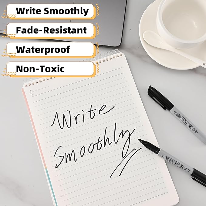 - WATERPROOF: the black permanent marker is smooth and waterproof. If the water is accidentally spilled on the written words, the words will not flower, and the black markers permanent is not easy to erase and fade