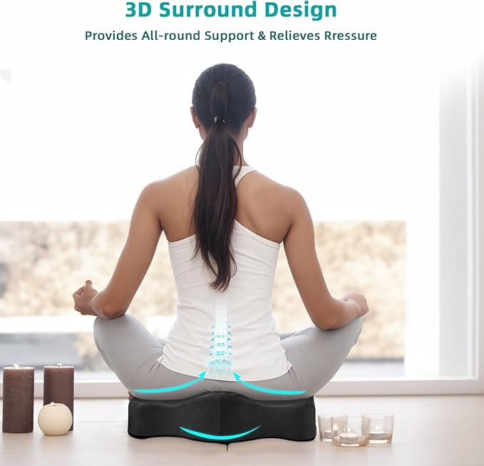 - 【Ergonomic Seat Cushion for Office Chair】Forcanby comfort seat cushion with an ergonomic design shaped to fit the curves of your body, providing full support and pressure relief for your hips, providing all-day sitting comfort. Coccyx seat cushions are ideal for those who suffer from back pain, sciatica, or other problems caused by long periods of sitting.