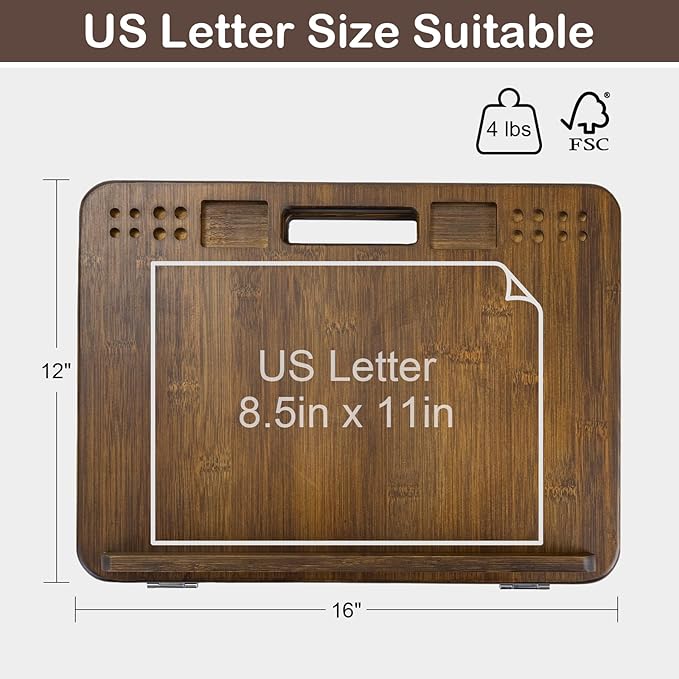- Compact and Portable Size – Measuring 16 inches by 12 inches and weighing just 4 lbs, this portable art board is easy to carry and perfectly fits US Letter size (8.5 x 11 inches) paper, making it a convenient lap desk or travel sketch board.