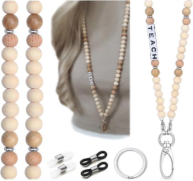 - Stylish Teacher Lanyard - Natural wooden bead lanyards for ID badges. Stylish and looking fancy. Great as teacher lanyard, teacher lanyards for id badges and keys, teacher appreciation gifts, lanyards for cruise ship cards, cruise lanyard for ship cards.