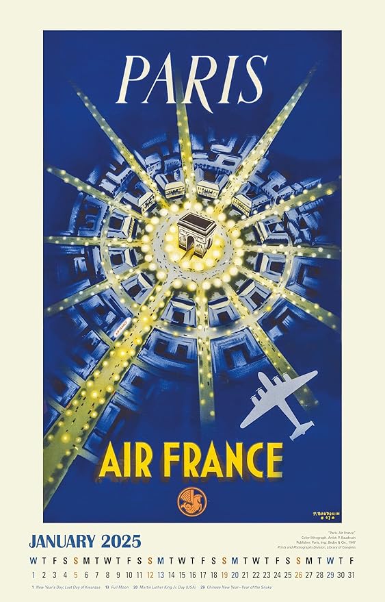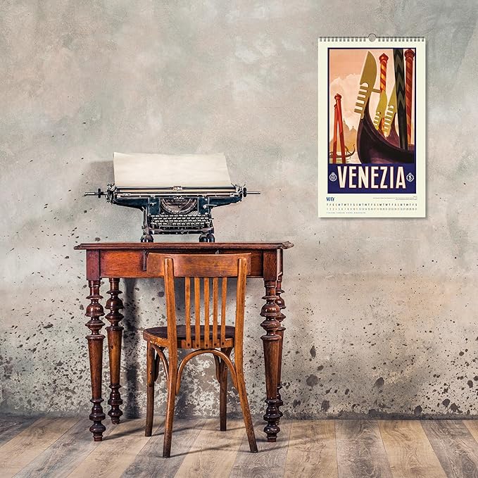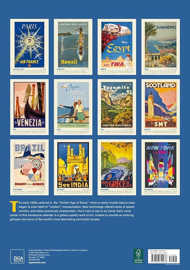 - 12-month spiral-bound wall calendar includes 12 travel posters and an introduction with the history of the vintage travel posters.