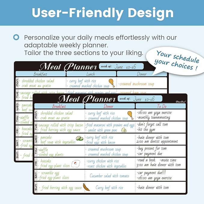 - Meal planner - Always wondering what you should prepare for your kitchen? This menu board allows you plan your meal through a whole week.