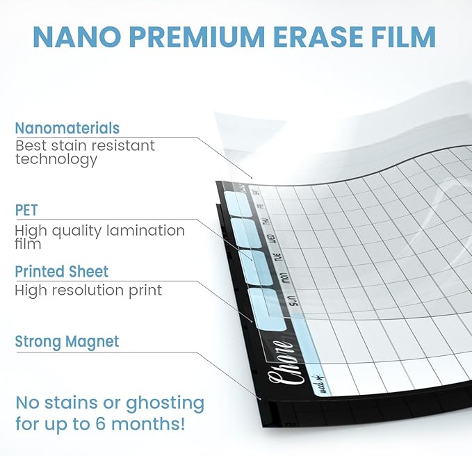 - Magnetic chore chart - Teach responsibility with our 8.5"x13" magnetic chore chart. It features 16 lines to track chores, making organization a breeze for kids, teens, and adults alike.