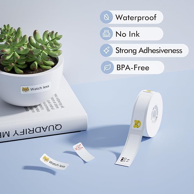 - Refill Labels - One roll of direct thermal labels with size 12 x 40 mm(0.47'' x 1.57''), 160 labels/roll, zoo pattern label tape, self-adhesive sticker, black and white printouts