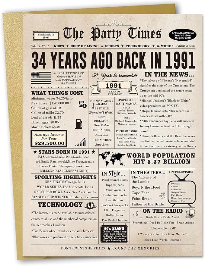 - 【Product Size】A 10.6 x 7.9 inches 34 year old birthday card stands out for its oversized size. It comes with an envelope for easy mailing or gifting.