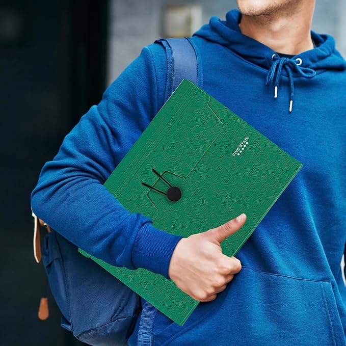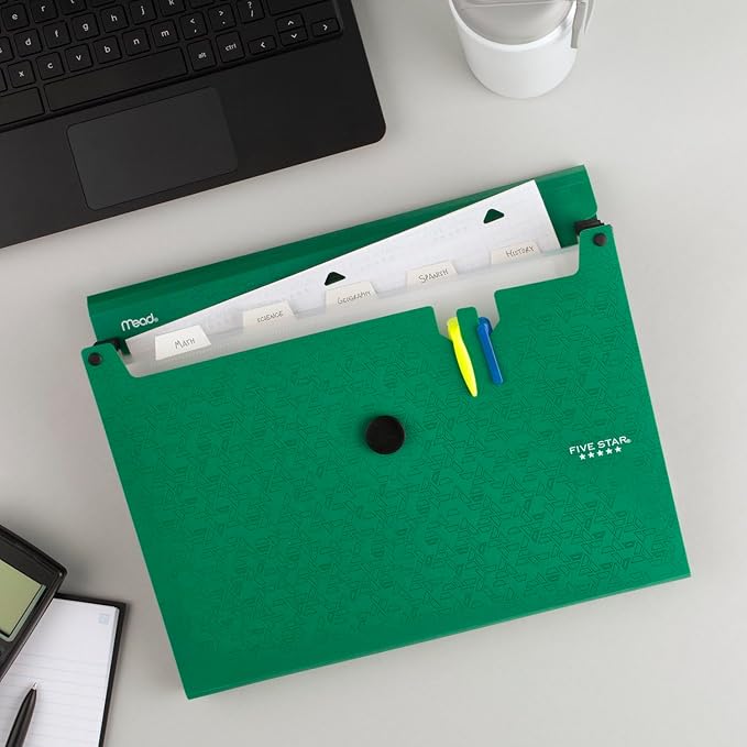 Five Star Expanding File Organizer, 6-Pocket Accordian File Organizer, Bungee Closure, Holds 11" x 8-1/2", Forest Green (350100D-ECM)
