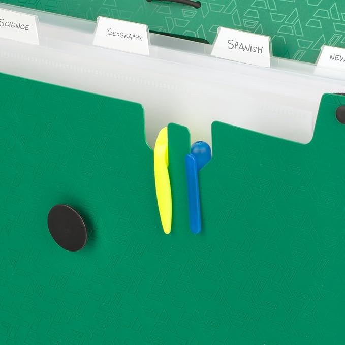 - 6 pockets provide easy organization for multiple classes or projects. Tab inserts are included for labeling each pocket accordingly.