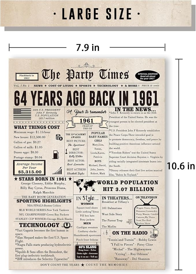 64th Birthday Card Gifts for Women Men, Large Birthday Gifts for 64 Year Old Mom Dad Husband Wife. Retro 64th Bday Decorations Ideas