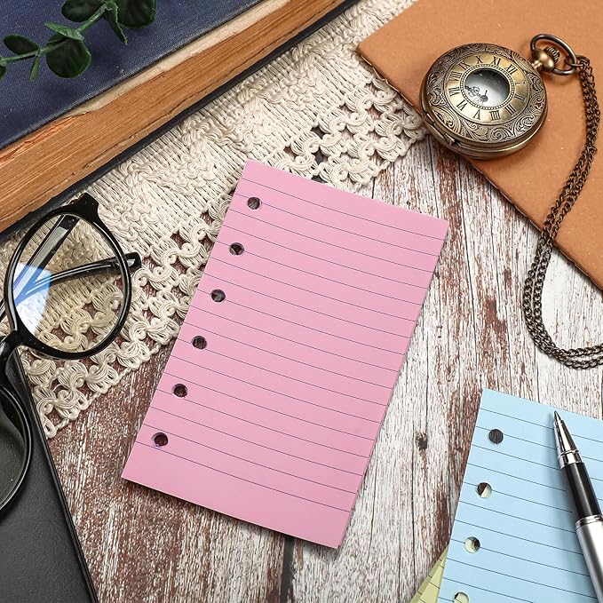 Ireer 200 Sheets Blank Lined Paper Refill for 3 x 5 Binders 6 Ring Memo Refill Paper Mini Ruled Filler Paper Books Planner Inserts Blank Lined Paper for Binder (Pink Blue Yellow Green)
