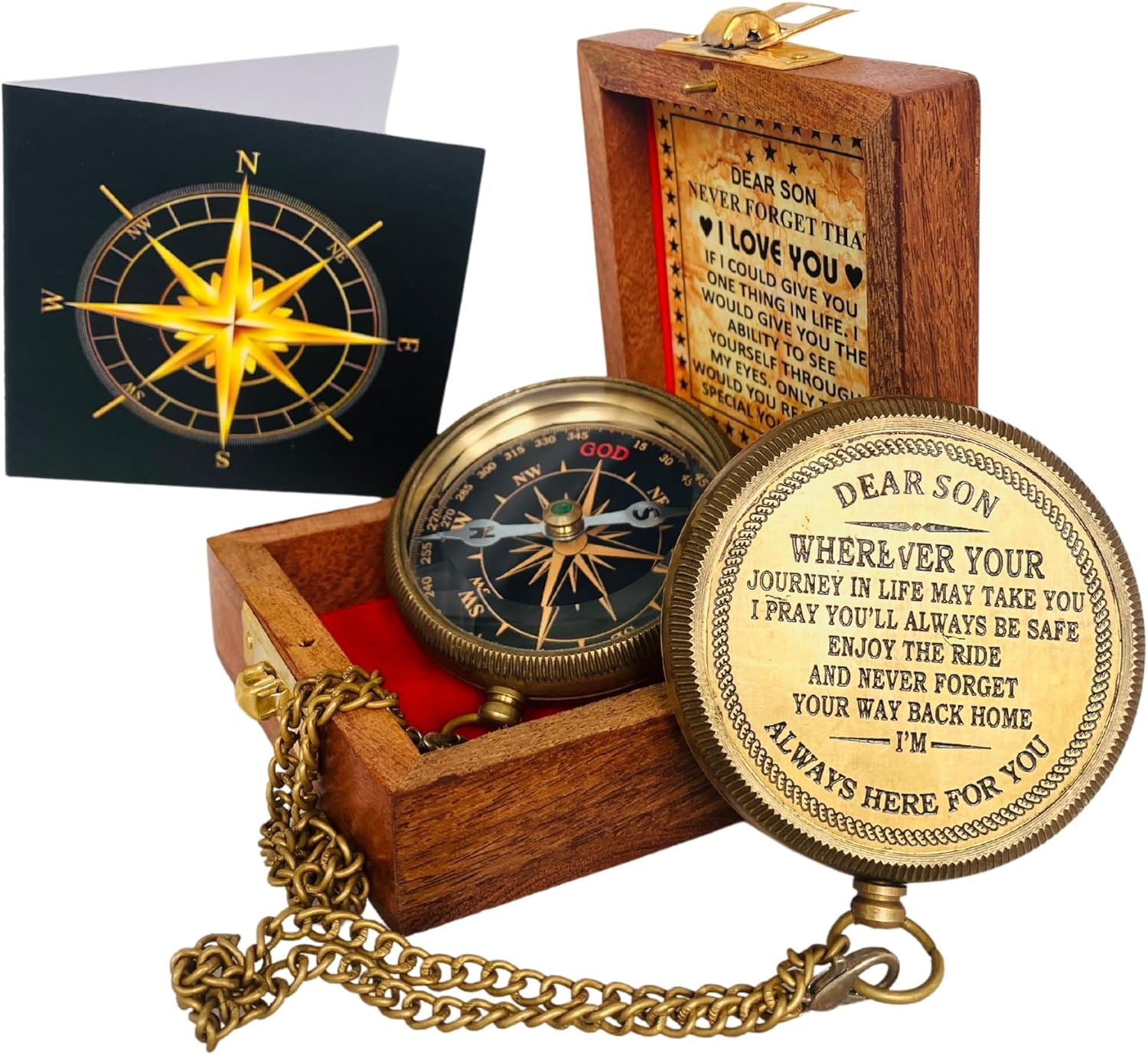 - Gift for Son from Mom / Dad - Engraved Compass with reassuring Father Son Love Quote Engraved on Top Lid makes it a perfect Inspirational gifts for son from Father. A reassuring motivational gift for son ensuring that You will Always be There for Your Son.