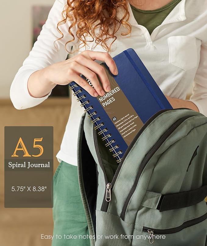 Lined Spiral Journal Notebook, A5 Hardcover Spiral Journals for Women Men, 150 Numbered Pages Spiral Bound Notebook, 100 GSM College Ruled Notebooks for Writing Note Taking 5.75" x 8.38", Navy Blue