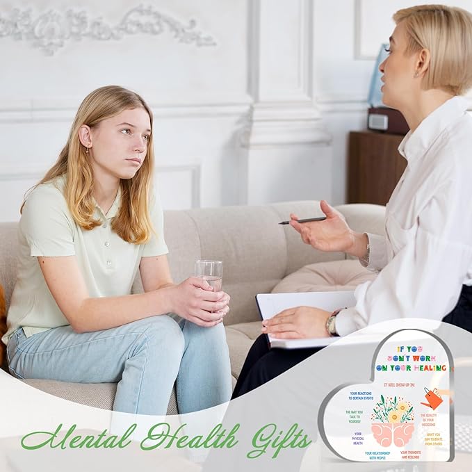 Mental Health Decor, Psychotherapy Affirmations Therapist Office Heart Acrylic Decor, Mindfulness Decor for Therapy Office Decor Sign, Mental Health Gifts for School Home Tabletop Therapy Office Decor