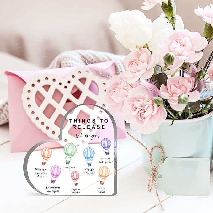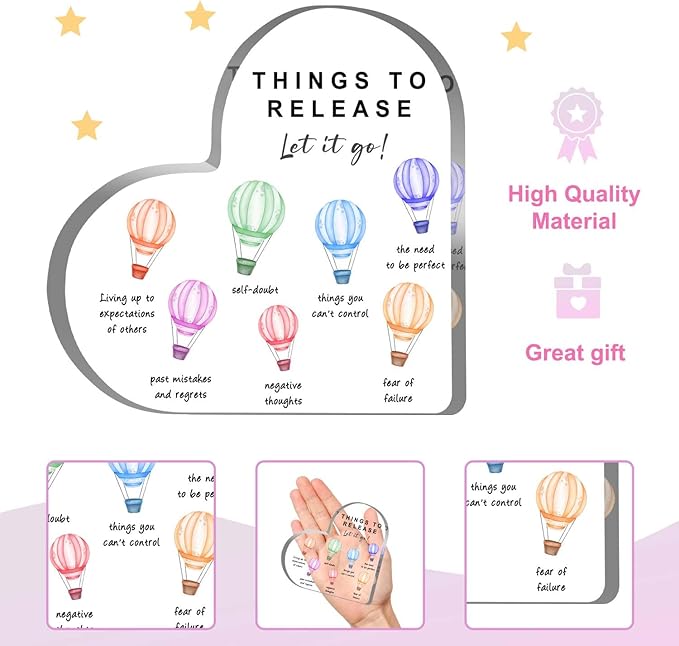Mental Health Awareness Decor, Things to Release Psychotherapy Affirmations Heart Acrylic Sign, School Counselor Sign, Therapy Anxiety, Psychology Therapy Gift for School Home Tabletop Therapy Office