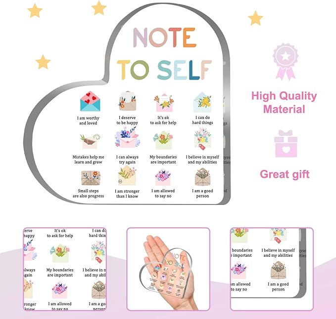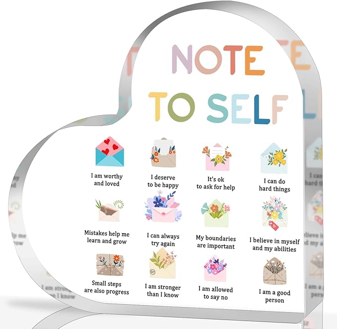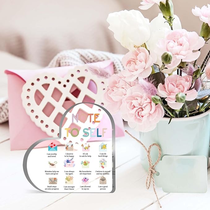 Mental Health Awareness Decor, Note to Self Psychotherapy Affirmations Heart Acrylic Sign, School Counselor Sign, Therapy Anxiety, Psychology Therapy Gift for School Home Tabletop Therapy Office Decor