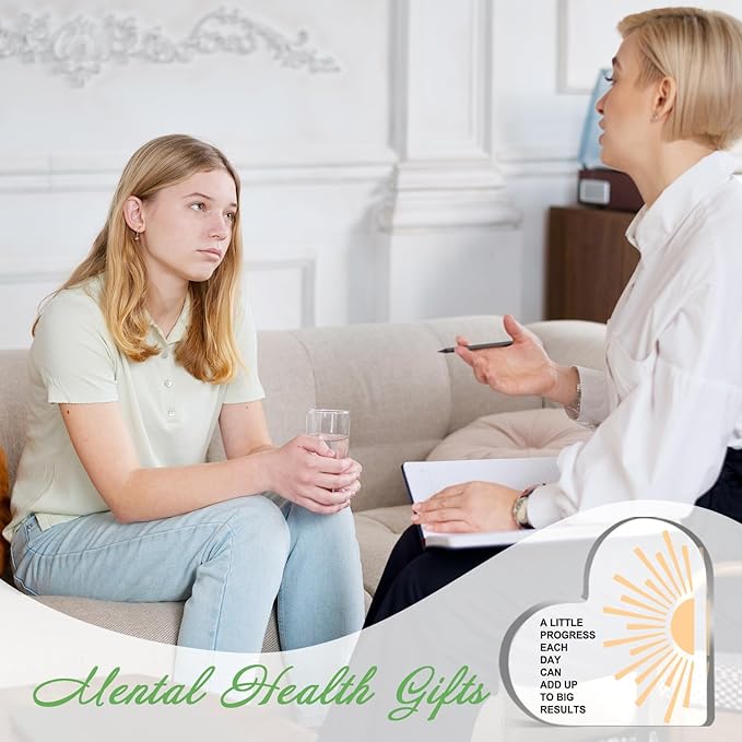 Mental Health Awareness Decor, Psychotherapy Affirmations Heart Acrylic Sign, School Counselor Sign, Inspirational Positive Sayings Gifts for School Home Therapy Office Living Room Bedroom