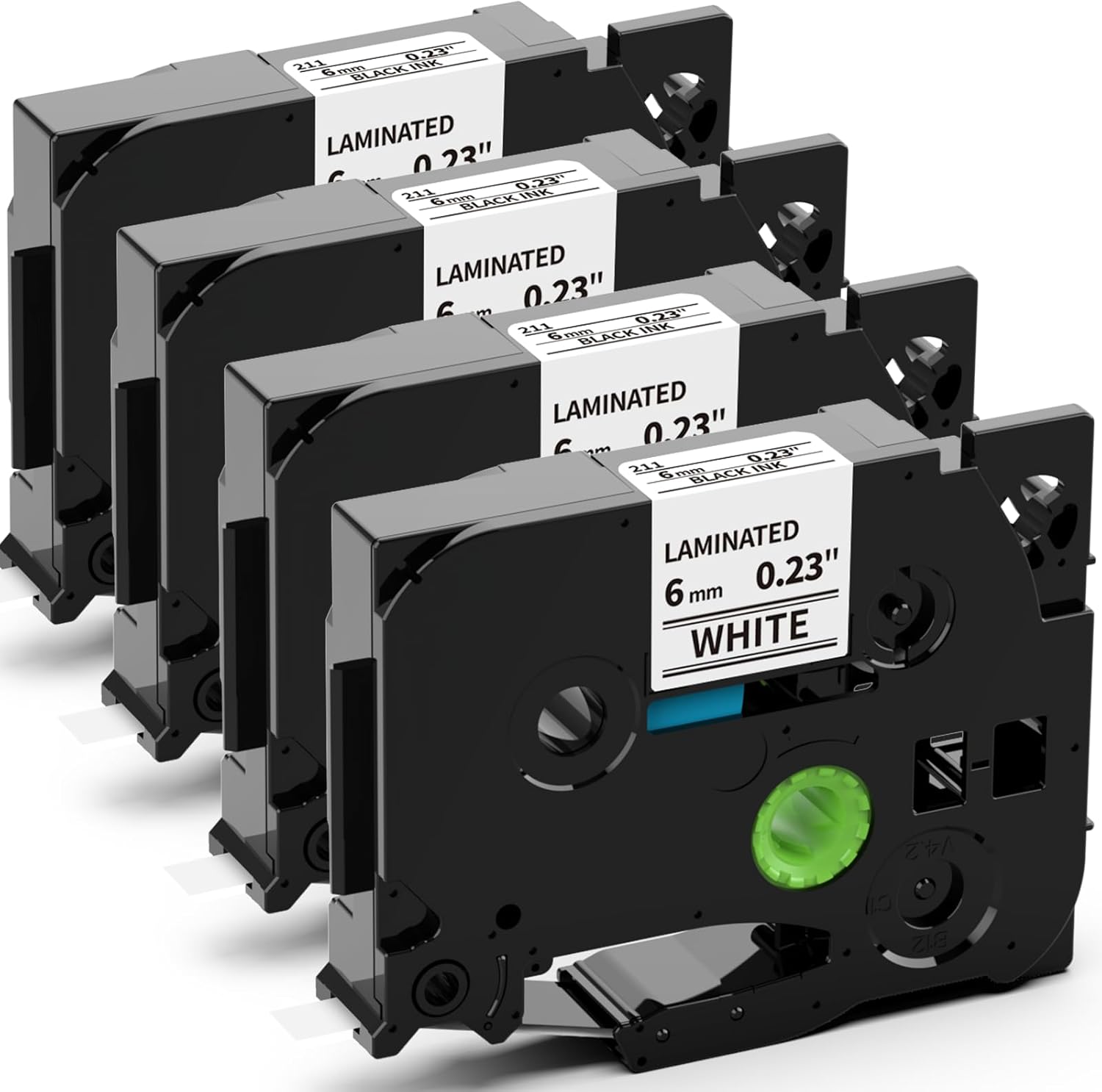 - Color: black on white, 4-pack 6mm tze tz tape replacement for Brother TZE-211 TZE211 tz tape 6mm 0.23 laminated white. Size: 6mm x 8m (1/4 inch x 26.2 ft)