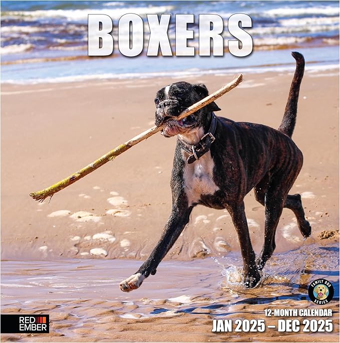 - SLEEK SWEETIES – Treat yourself to twelve months of your favorite furry friends. From grassy fields to leaf-covered backyards, these handsome boxers are poised and ready to make your year a blast!