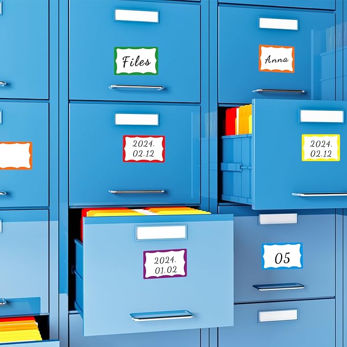 Removable Name Tags, 3 1/2" x 2 1/4", White with Colorful Border, 120 Waterproof Name Badges for Office,School,Classroom and Home