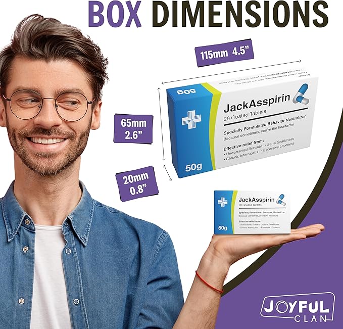 - SPECIALLY FORMULATED BEHAVIOR NEUTRALIZER - say goodbye to unwarranted bravado and chronic interruptitis with JackA**pirin's potent formula. Designed to combat even the most stubborn cases of jackassery with a hearty dose of humor, this gag gift is sure to keep the laughs flowing long after the recipient has got the message you’re ‘subtly’ trying to tell them