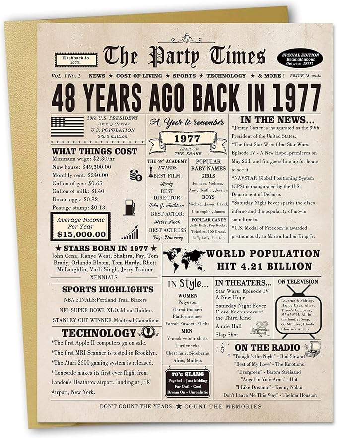 Happy 48th Birthday Card for Women Men, Funny 48 Year Old Birthday Gift Card for Husband Wife Him Her, Retro 48th Bday Decorations Ideas