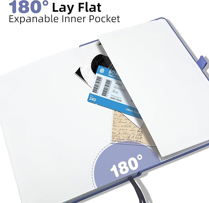 - ✍🏼180°LAY FLAT DESIGN: The classic unruled notebook can be laid flat and fully spread out 180° without hindering your drawing, making writing easier for both right and left-handed users, which make the best use of your writing space.