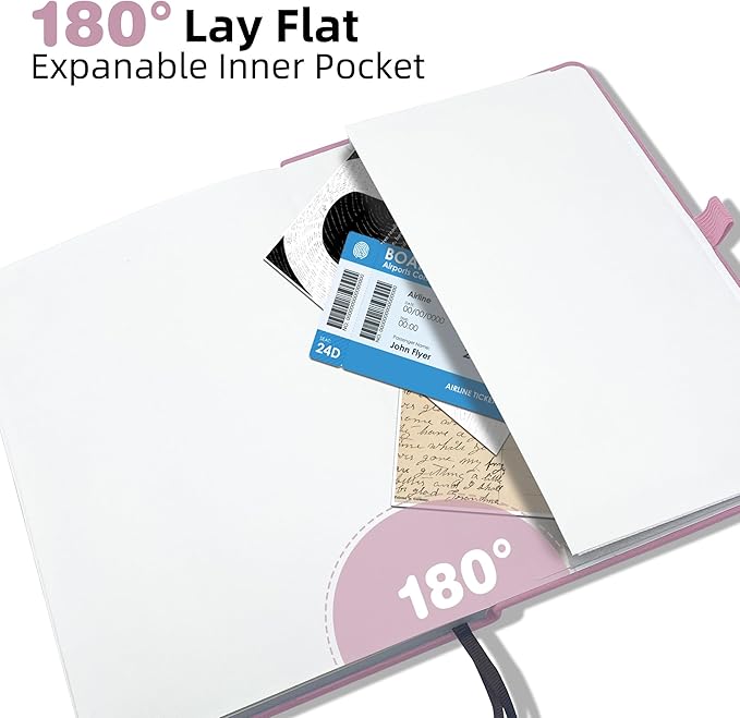 - ✍🏼180°LAY FLAT DESIGN: The classic unruled notebook can be laid flat and fully spread out 180° without hindering your drawing, making writing easier for both right and left-handed users, which make the best use of your writing space.