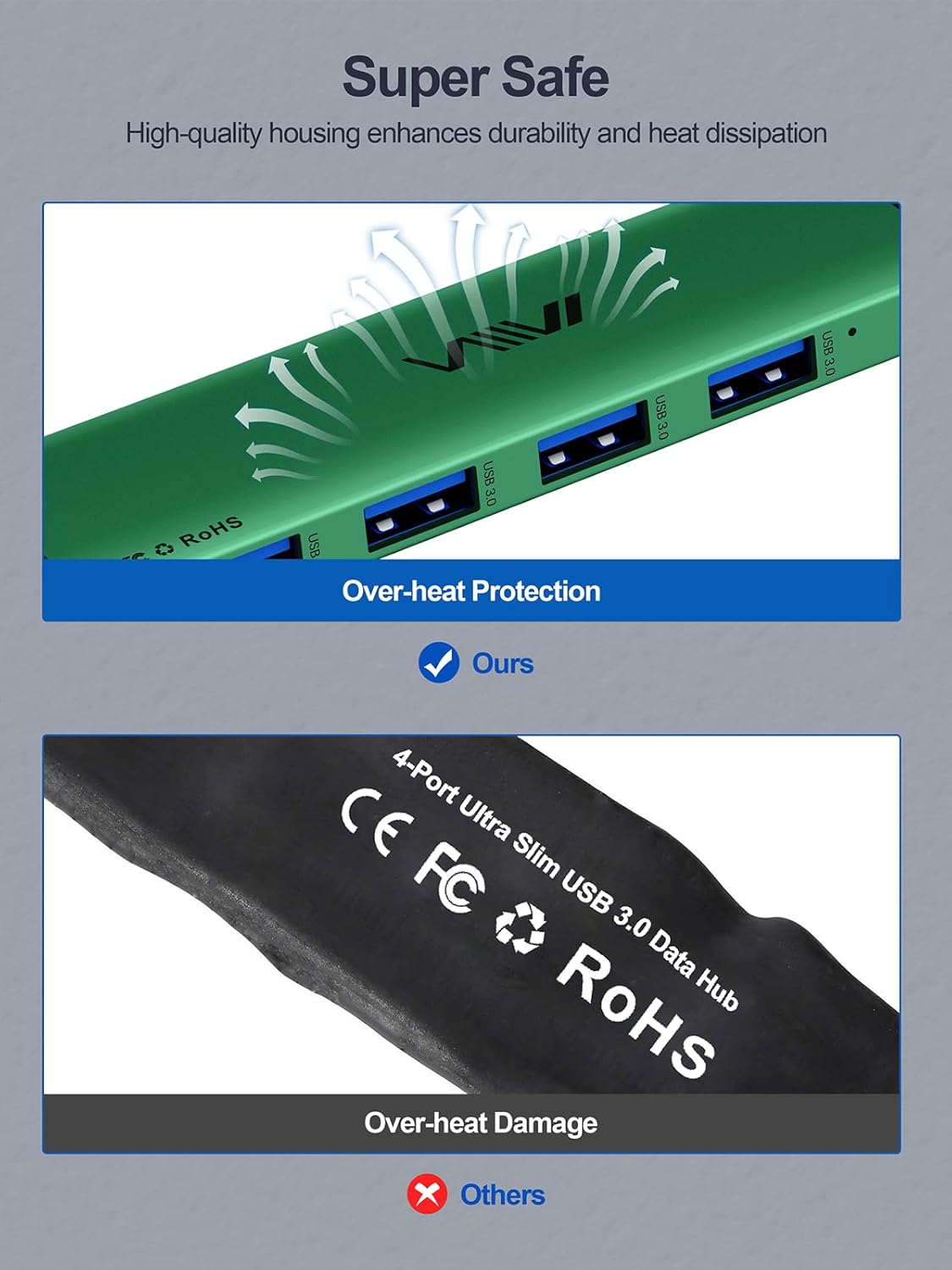 - High-Speed Data Hub: The 4-port USB distributor utilizes high-efficiency USB 3.0 to provide stable data transfers of up to 5Gbps (USB 3.0) and supports transfer speeds of 480Mbps (USB 2.0) and 12Mbps (USB 1.1).***This device is only used for data transmission and cannot be used to charge the device***