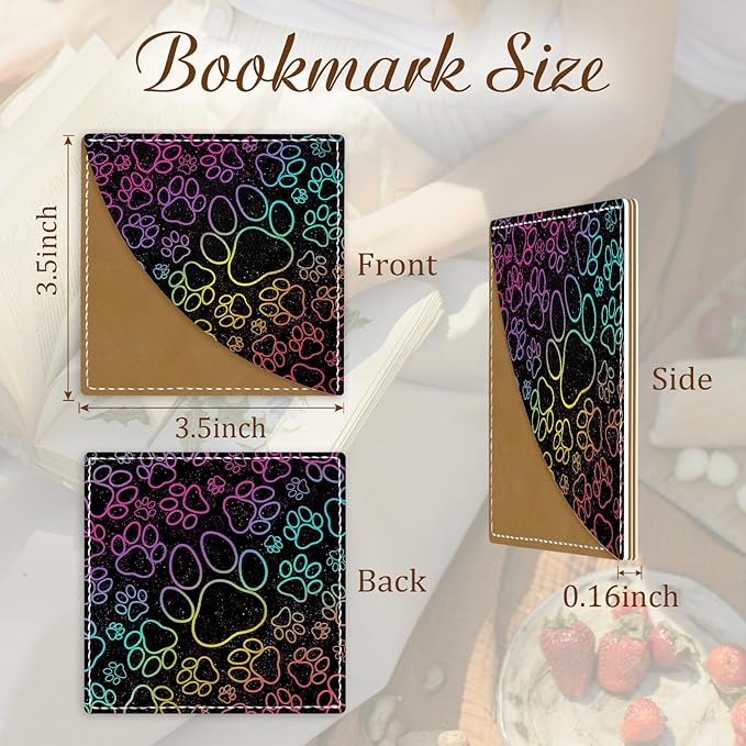 Cute Dog Cat Paws Corner Bookmarks, Funny Leather Book Accessories for Book Lovers, 3 Pcs Reading Book Page Markers for Women Men Student Teacher Girls Boys Kids Retirement Birthday Gifts