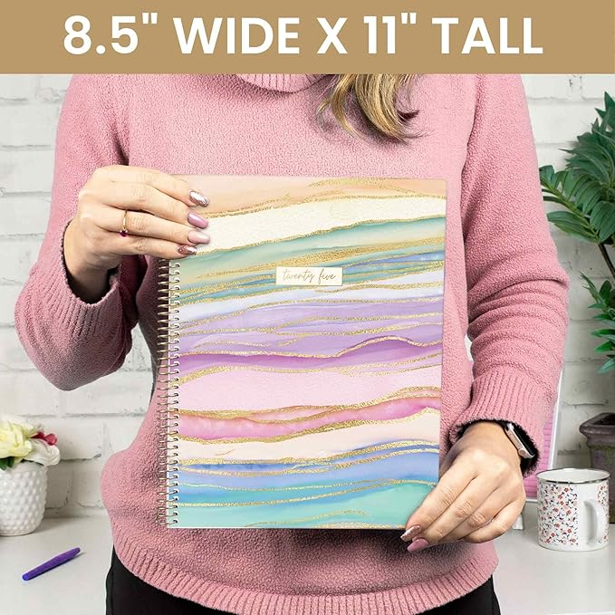 - PREMIUM FEATURES: Soft, lightweight covers made from thick cardstock with gloss film lamination, monthly tabs, deluxe 100gsm bright white bleed-resistant paper, recyclable metal lay-flat spiral binding, vertical front and back inside storage pockets, and FREE magnetic bookmark and stickers now included!