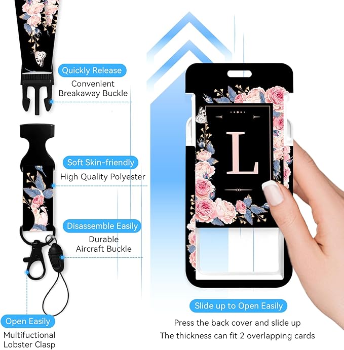 A-Z Badge Holder with Retractable Reel and Breakaway Lanyard Badge Clips Retractable Heavy Duty Badge Reel,Keychain,ID Holder with Breakaway Lanyard for School Nurse Office Teen L