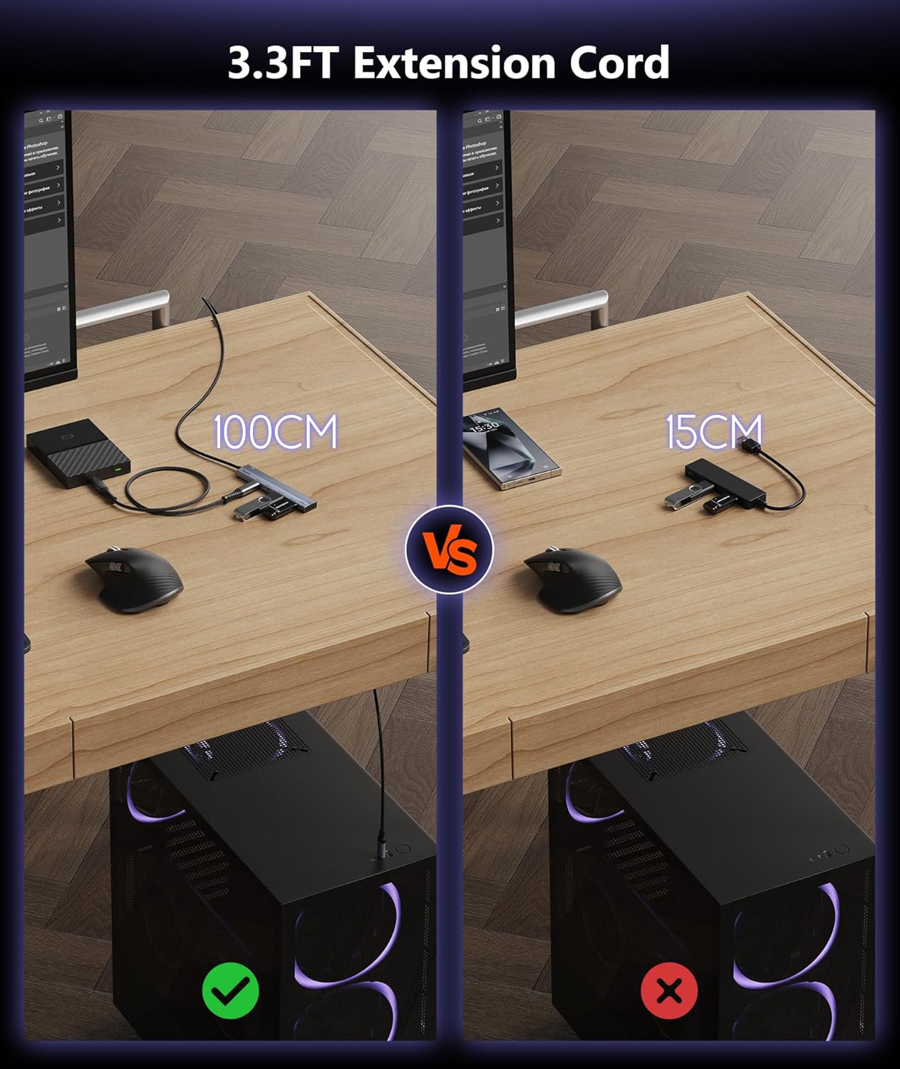 - 【3.3ft Long Cable + Velcro Closure】The Upgraded USB C Hub Multiport Adapter features a 4-foot cable that allows you to extend the USB port from the computer beneath the desk or all in one PC. Use Velcro fasteners to keep surplus cables organized.