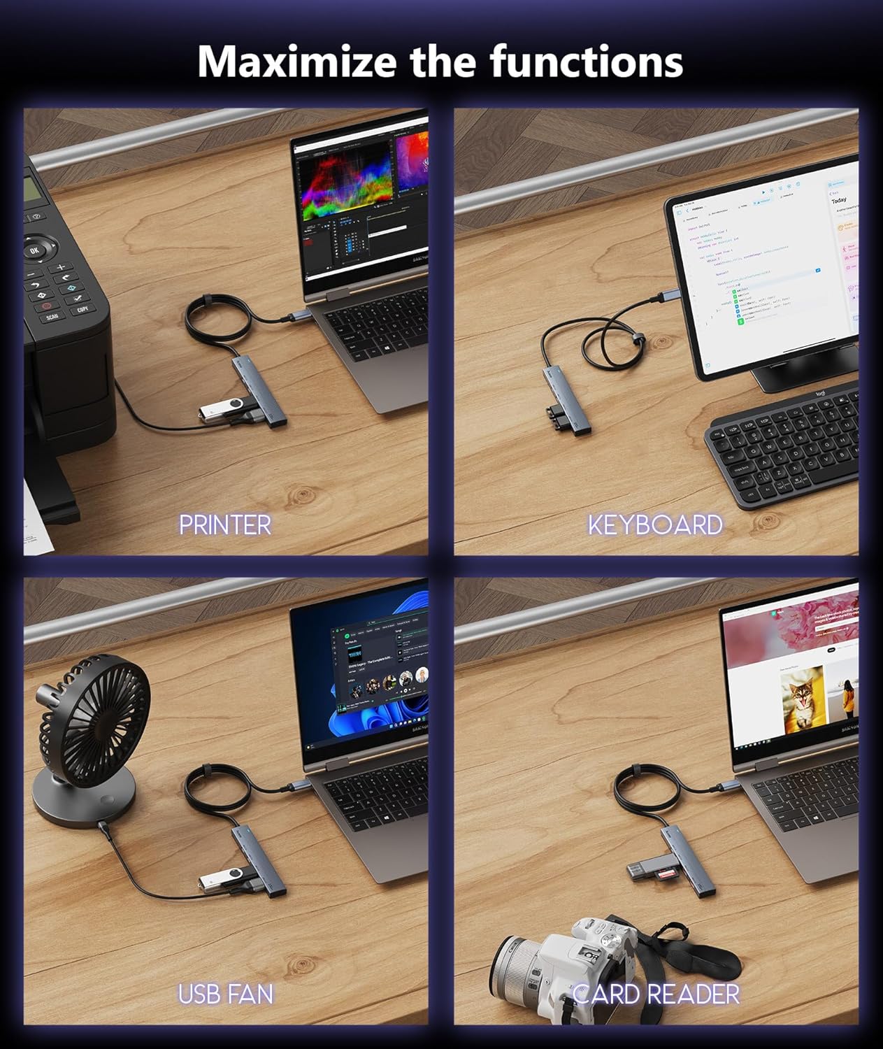 - 【4 Ports USB C Hub Adapter】Aceele USB C 3.2 Hub helps expand a computer's USB-C port to 2 USB-A 3.2 and 2 USB-C 3.2 ports, which is perfectly connect all your USB peripherals in your daily work.📵NOTE: All Ports Not Support Charging/Monitor(video output).
