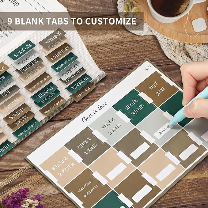 - Enhance Bible Study with Quick Navigation - Effortlessly organize your Bible with 39 tabs for the Old Testament, 27 for the New Testament, and 9 blanks for personalization. Enhance your study, quickly finding any book you need. Dive into scripture with ease and purpose.