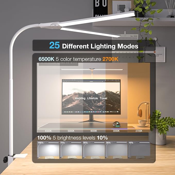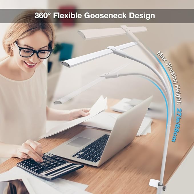 - 360° Flexible Gooseneck: The flexible gooseneck monitor lamp can be freely adjusted 360° to avoid direct light on your eyes and reduce eye fatigue. Workbench light with 70inch of lighting area, the maximum working height can reach 27 inches. Perfect for reading, working, studying, drawing, sewing, crafting, architect, etc