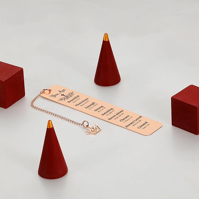 - Christian bookmark for women: Metal bookmark with chain and inspirational bible verse: "You Are Beautiful Eccl.3:11, Victorious Rom.8:37, Enough 2 Cor.12:9, Strong Phil.4:13, Amazing Ps.139:14,Never Alone Matt.28:20,Chosen 1 Thess.1:4, Always Loved Rom.8:38, Created Gen.1:31" . Bible bookmarks for women mom grandma stepmom families best friend coworkers female.