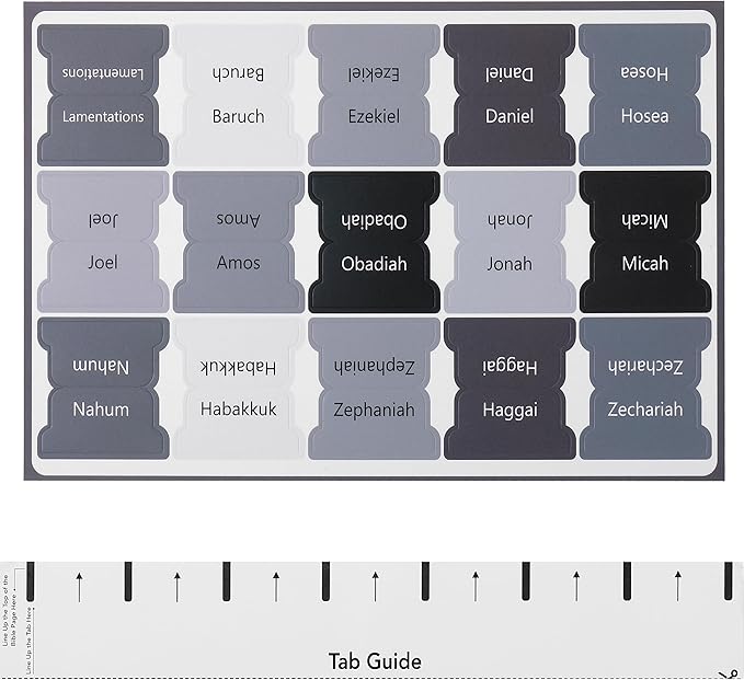 - With their large, clear font and bright printing, these Bible tabs offer a convenient organizational tool for those looking to engage in Bible study or journaling.