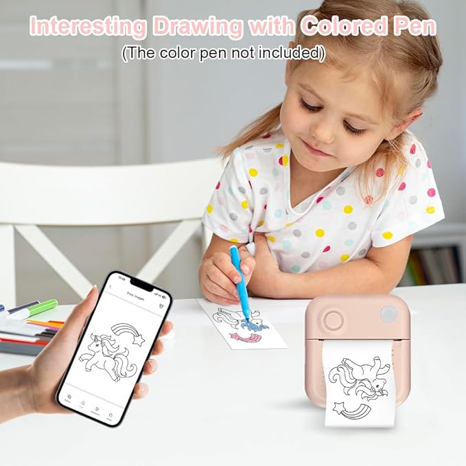 - Creative Fun for All Ages: This inkless printer opens up a world of creativity and imagination. With its 203dpi clear printing, the Mini Sticker Printer ensures high-definition imaging, providing a safe and enjoyable experience for kids while learning and playing. From printing 3D templates to painting, folding, and gluing, this printer enables users to create interesting 3D handicrafts and have fun with family and friends.