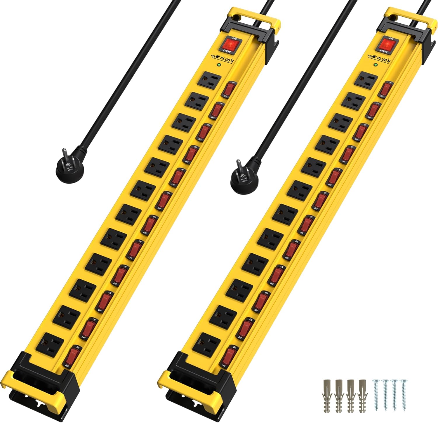 Plug'n 12 Outlet 3300J Surge Protector Power Strip,Individual Switches,9FT/14AWG/15AMP/1875W Power Cord,Heavy Duty Metal Power Strip with Cord Manager,for Workshop,Garage,Shop,2 Packs