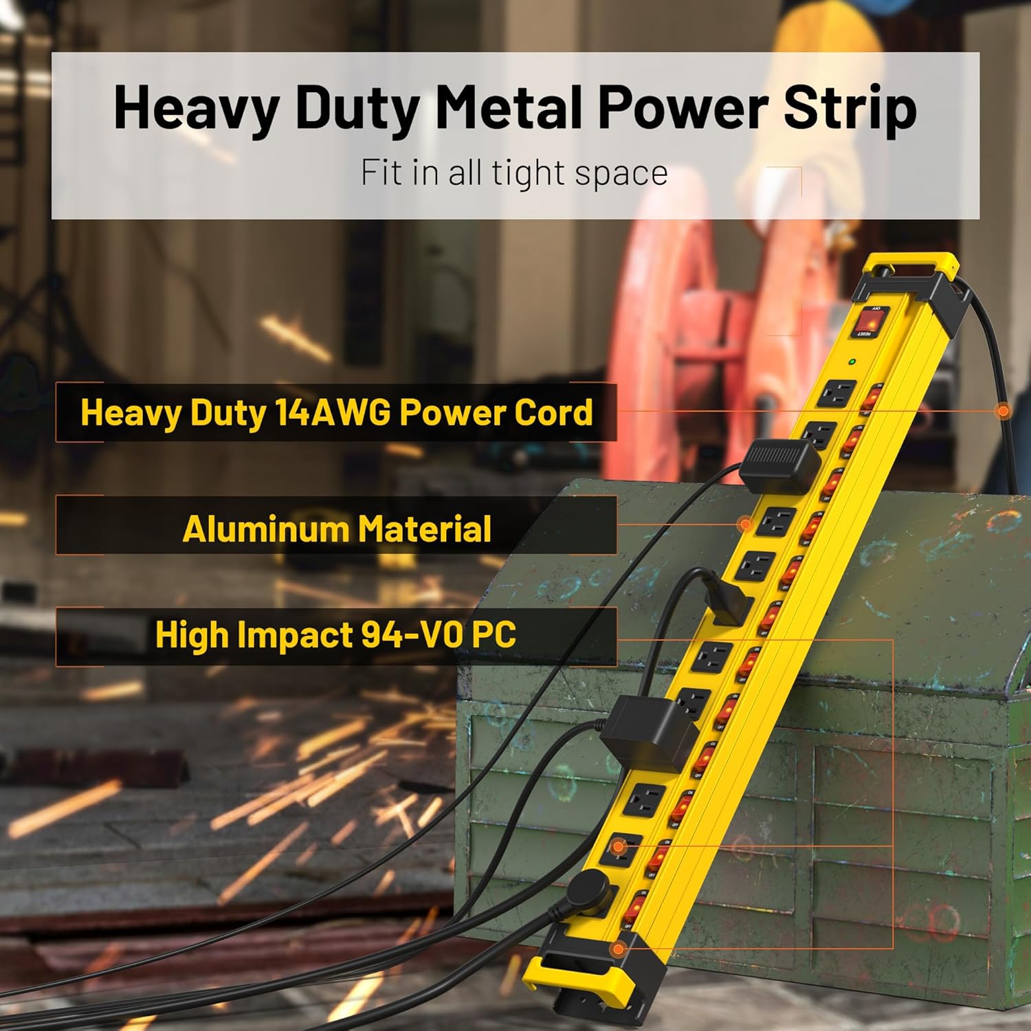- Large Power Strip--AC 15A 125V 60HZ 1875W, perfect for charging various electric tools in the workshop,garage,commercial,shop,home,kitchen,factory,workbench, industrial, under cabinet, warehouse and office.