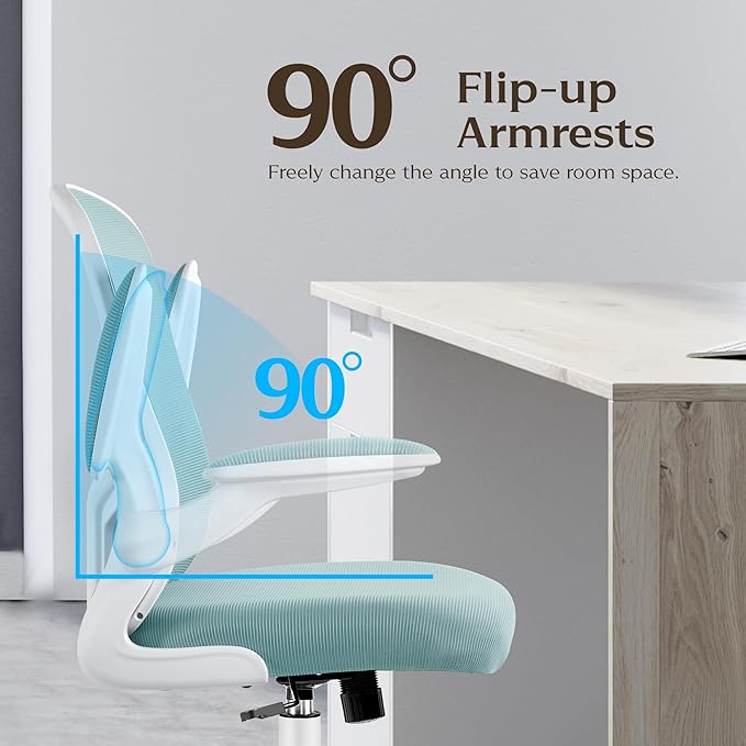 - Flip-up Armrests: The home desk chair with 90° Adjustable flip-up arms can place the chair under the desk to save space; Suitable for office, bedroom, study room and living room