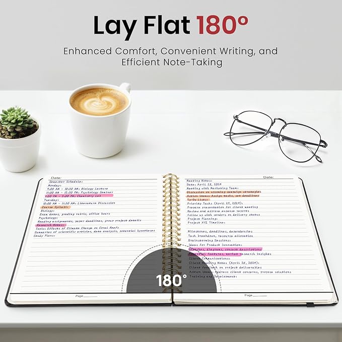 - Premium Paper Quality: Crafted from 100 GSM thick, ink-friendly paper, our notebook ensures minimal ink bleed-through and ghosting. It accommodates a variety of pens, from ballpoint to gel and fountain pens. Each page features a convenient day header for effortless date tracking.